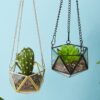 Modern Polyhedron Diamond Shape Hanging Glass Terrarium Plant Holder